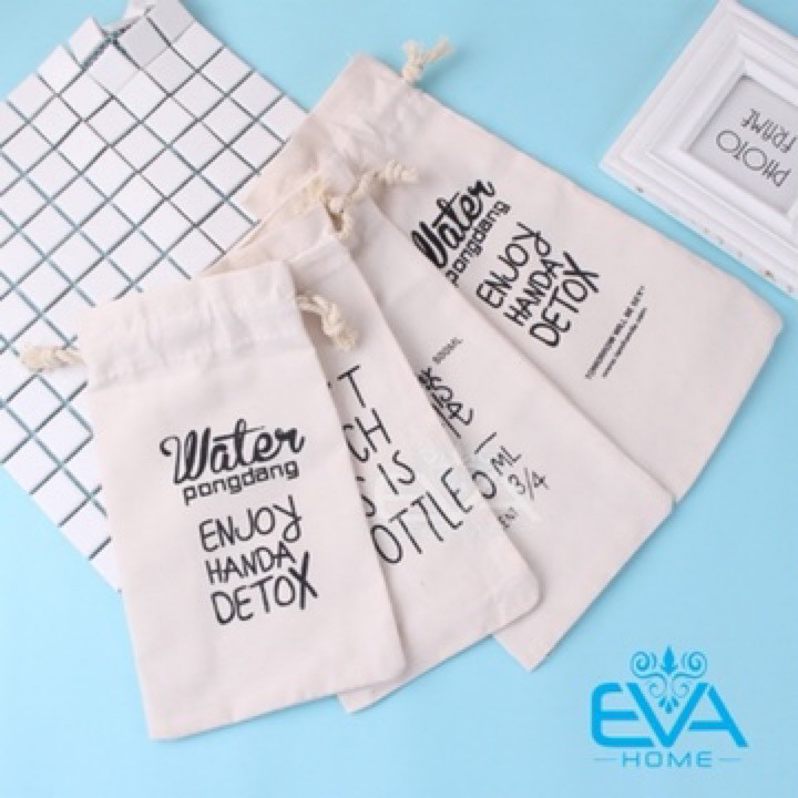 Túi Vải Canvas In Chữ Dây Rút Dùng Đựng Bình Nước 500 ml - 600 ml - 1000 ml