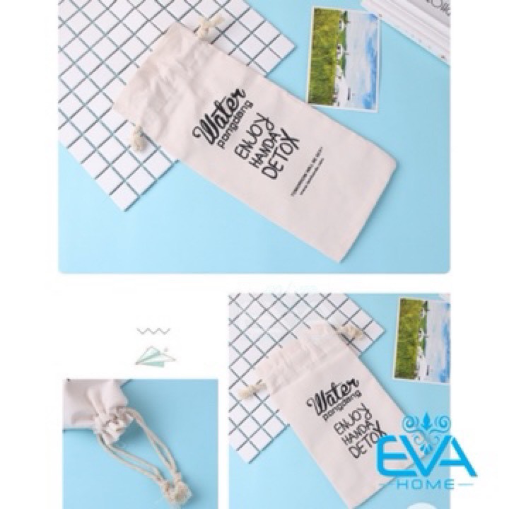 Nhà cửa & Đời sống > Bộ đồ bàn ăn > Bình nước & phụ kiện || Túi Vải Canvas In Chữ Dây Rút Dùng Đựng Bình Nước 500 ml - 600 ml - 1000 mlCòn hàng