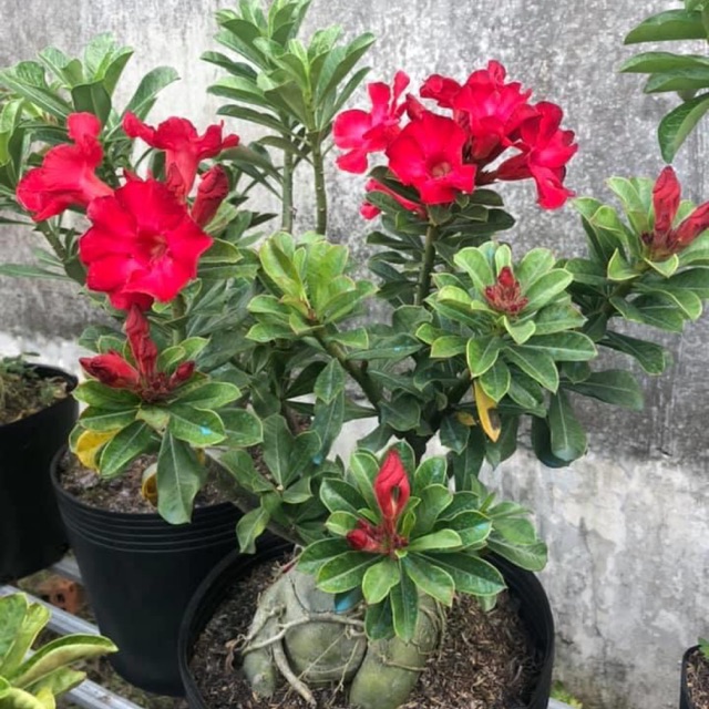 Sứ ghép thần tài 1 lớp hoa đỏ rất to,cây gốc to,ghép nhiều bo,hoa quanh năm,hoa rất lâu tàn.Cây rất khỏe mạnh,đang sung nhiều nụ.