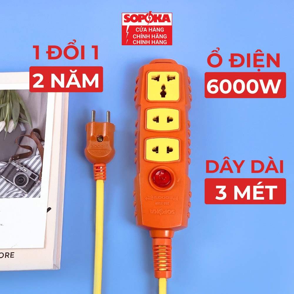 Giới thiệu [Mã BMBAU50 giảm 10% đơn 99k] Ổ cắm điện lõi sứ chống cháy SOPOKA 6000W siêu chịu tải