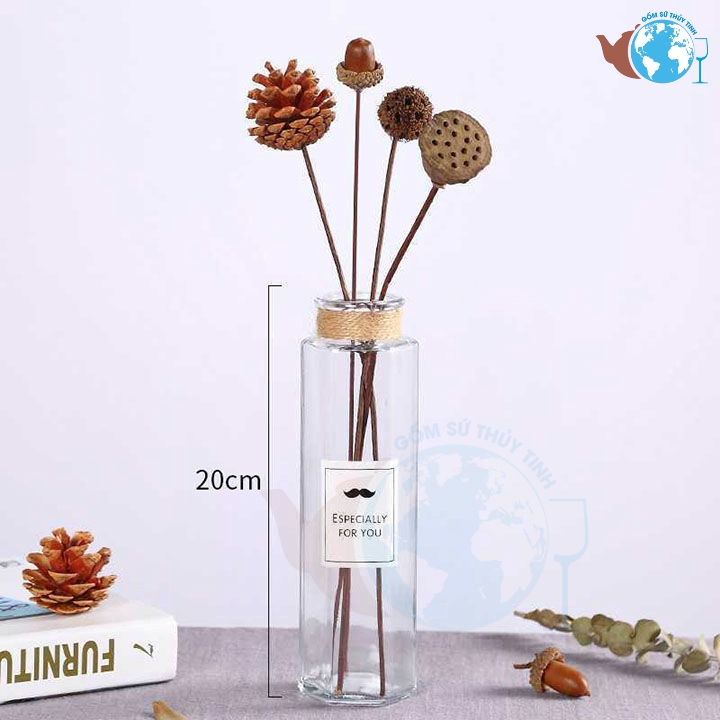 Sản phẩm chỉ gồm bình hoa thủy tinh,không bao gồm hoa và phụ kiện dây quấn.kích thước: