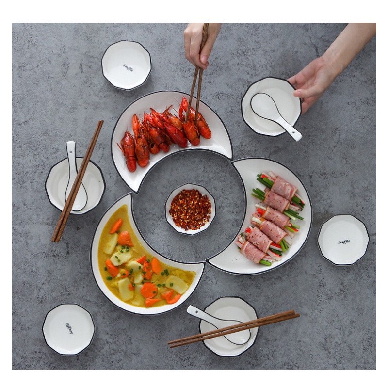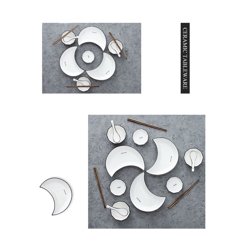 BỘ Bát Đĩa Sứ Xương Cao Cấp5 Đĩa sứ trăng khuyết xếp được rất nhiều kiểu khác nhau