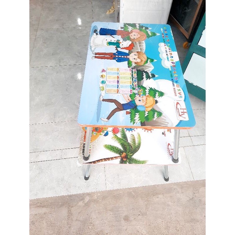 -Bàn học sinh ngồi bệt hoặc bàn ăn cơm- Chất liệu mặt bàn bằng gỗ ép, mặt bàn dược bọc thêm lớp bao kiếng trong giữ được sạch và bên cho bàn, chân bằng sắt có thể xếp gọn lại