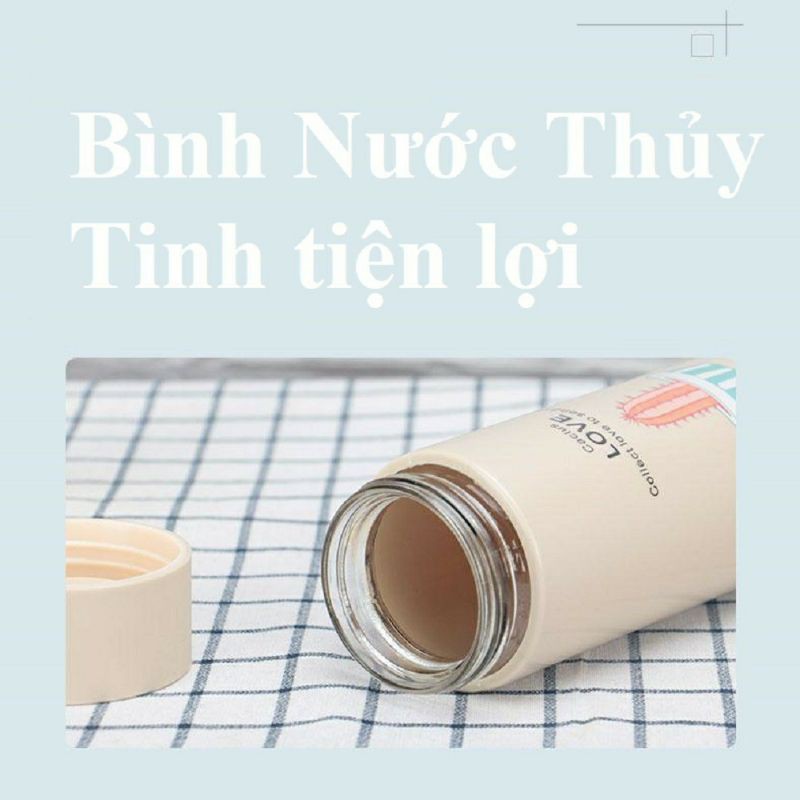Giới thiệu Bình đựng nước nhựa lúa mạch lõi thủy tinh 420ml in hình xương rồng