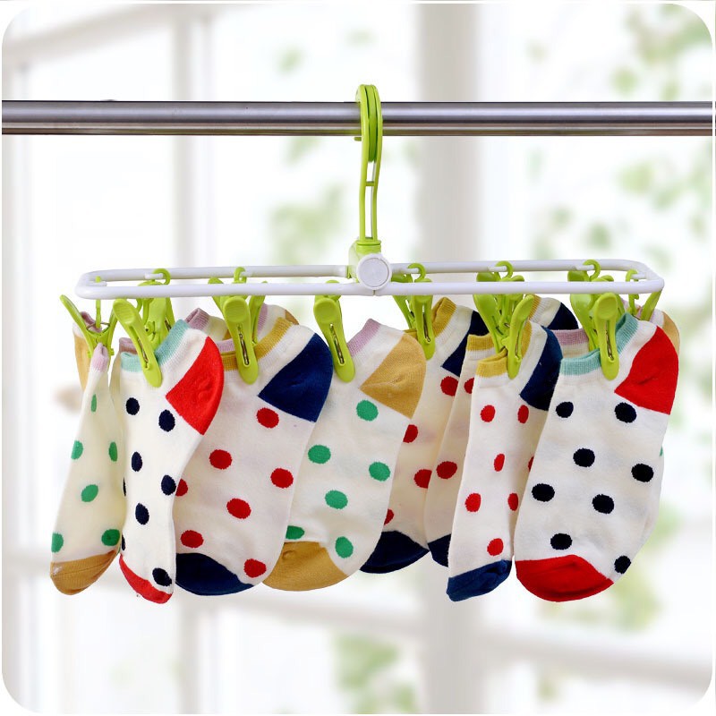 Móc chùm phơi quần áo 12 kẹp giúp bạn dễ dàng phơi các đồ nhỏ nhặt như tất, đồ lót, bao tay, bao chân, ...Chất liệu nhựa