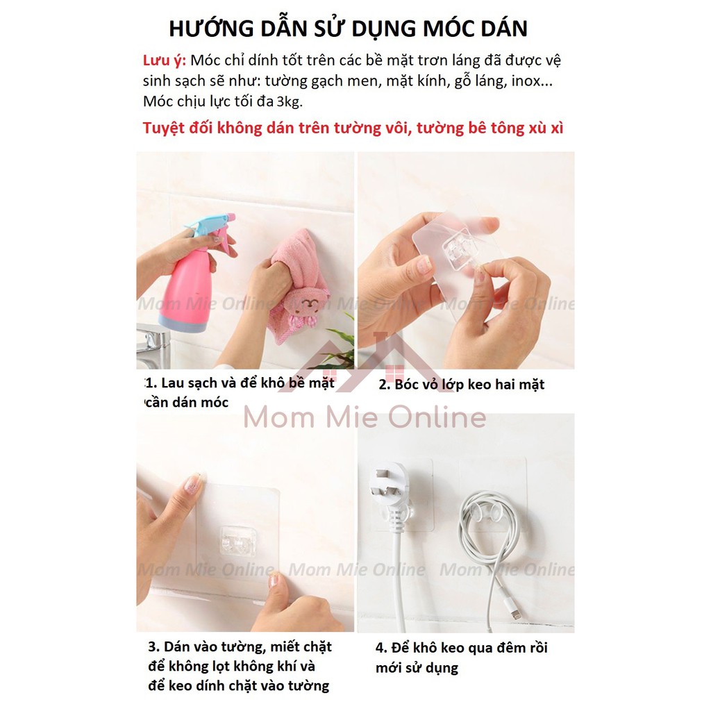 – Thiết kế móc dán trong suốt rất thẩm mỹ khi dán lên tường.