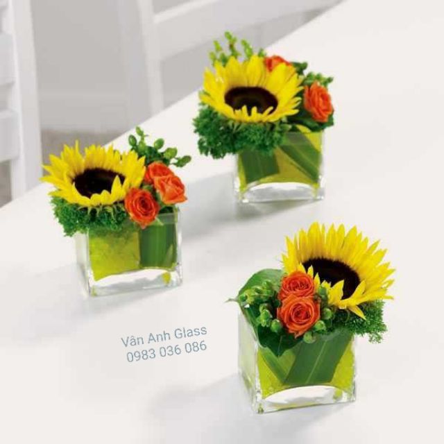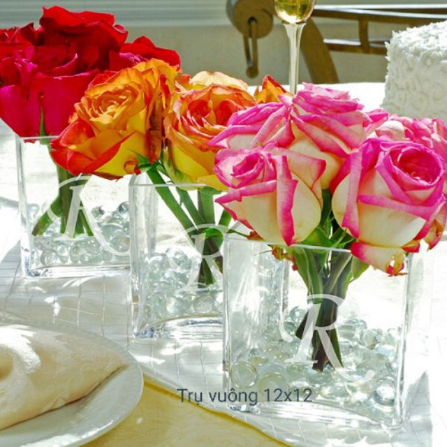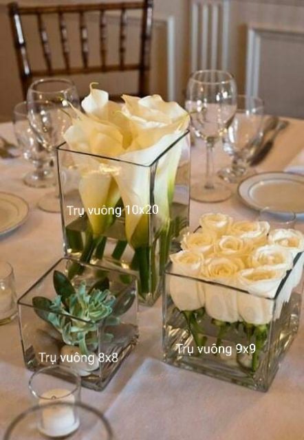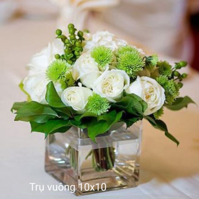 Lọ trụ vuông thủy tinh cắm hoa