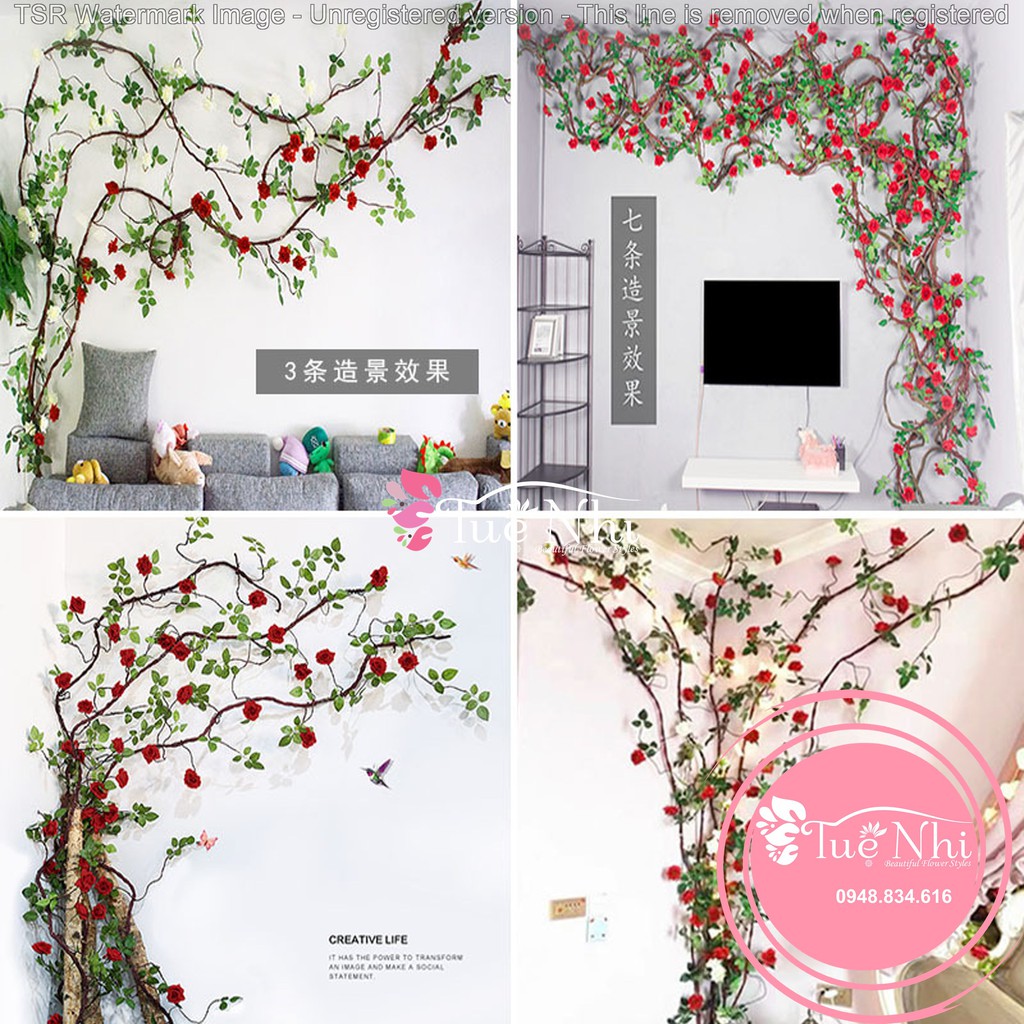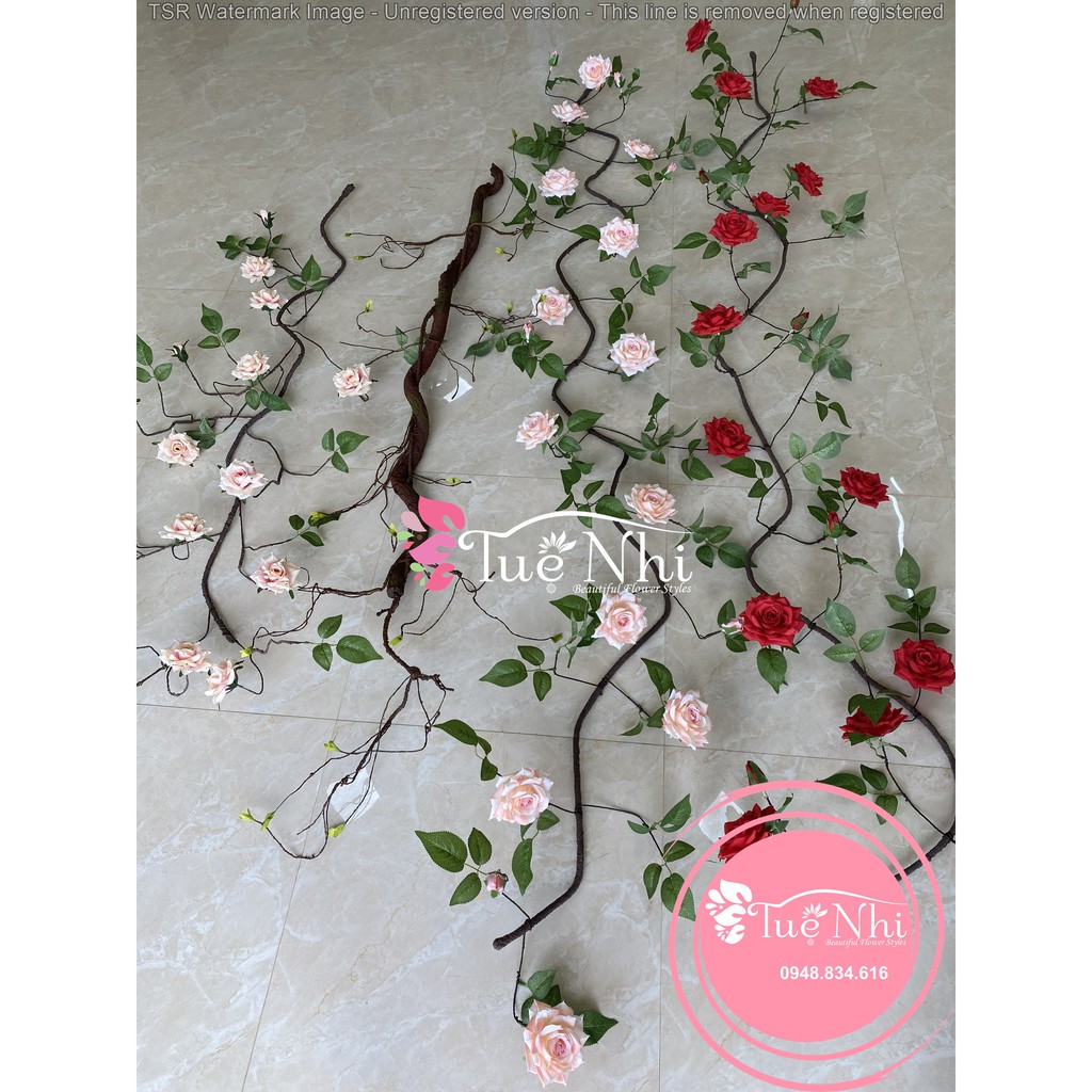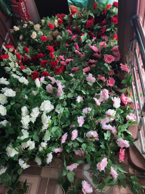 Giới thiệu Hoa Giả Hoa Lụa - Dây Hoa Hồng Nhựa Lõi Thép dài 2m