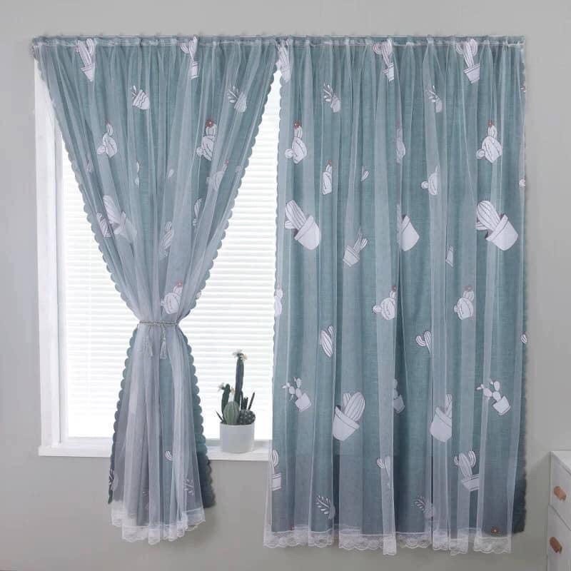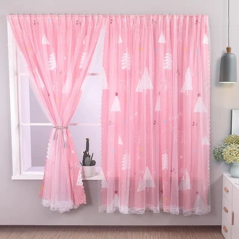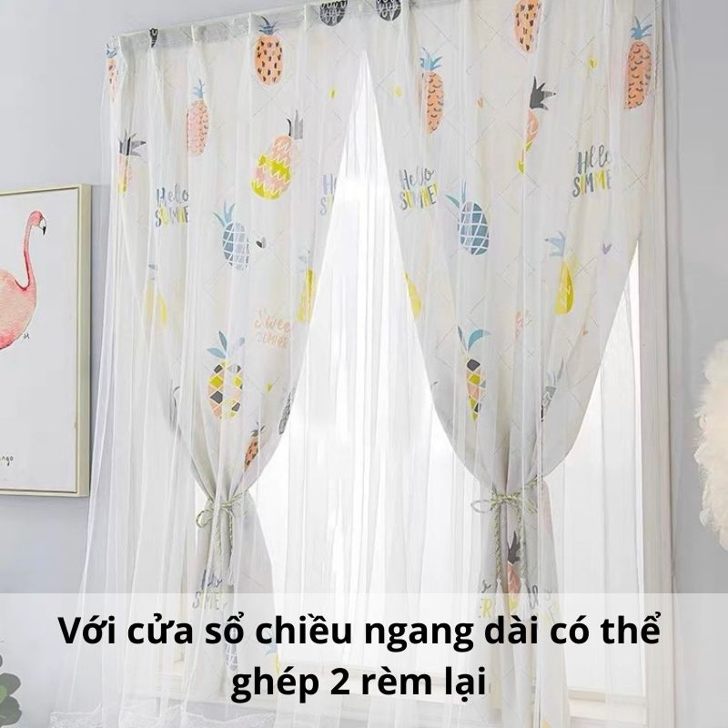 Rèm cửa sổ phòng ngủ dán tường 2 lớp, rèm trang trí chống nắng họa tiết xinh xắn
