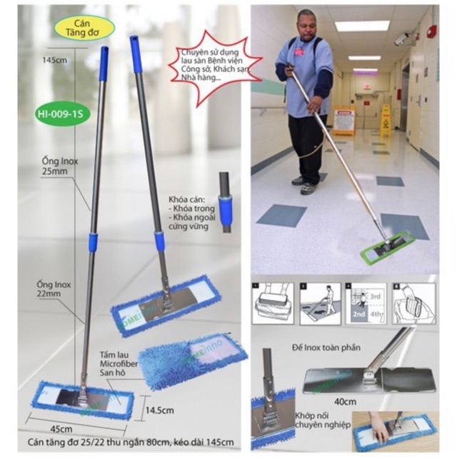 Cây lau nhà công nghiệp mâm inox bản to về sllThông số Kỹ Thuật: