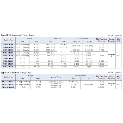 Thông số kỹ thuật của relay áp suất Autosigma HS-210: