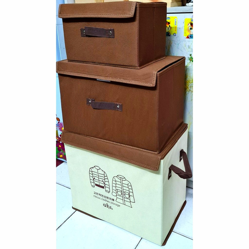 Nhà cửa & Đời sống > Nội thất > Tủ bếp || Combo 3 tủ vải có nắp liền màu nâu tiện ích 2020Còn hàng
