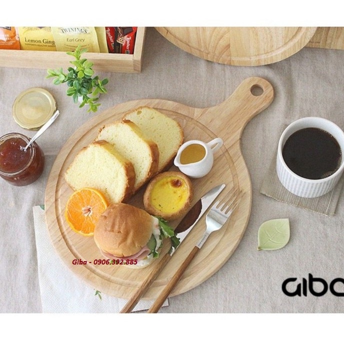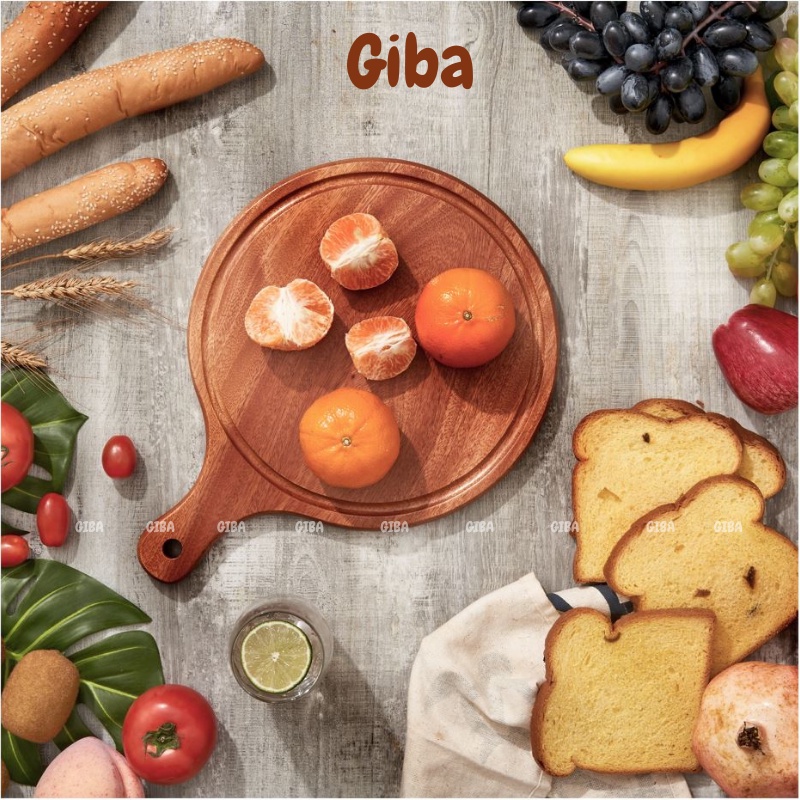 Nhà cửa & Đời sống > Dụng cụ nhà bếp > Thớt || Khay gỗ tròn có tay cầm đựng pizza GIBA, thớt dùng làm khay gỗ decor chụp ảnh sản phẩmCòn hàng