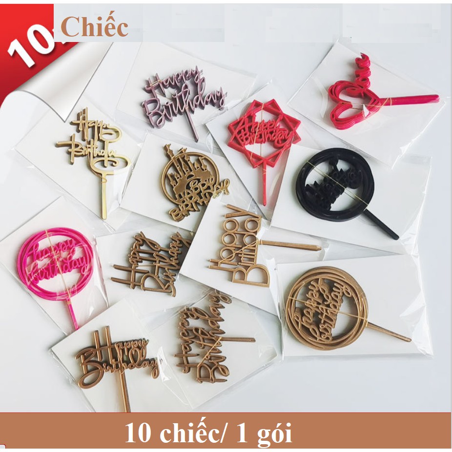 Giới thiệu Túi 10 meka Cong Happy Birthday trang trí bánh sinh nhật, mica cắm bánh sinh nhật
