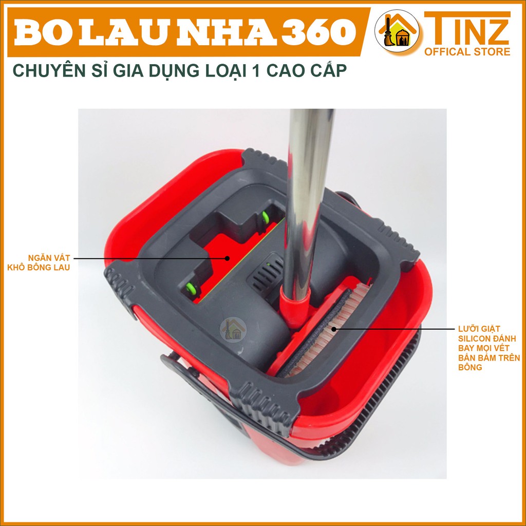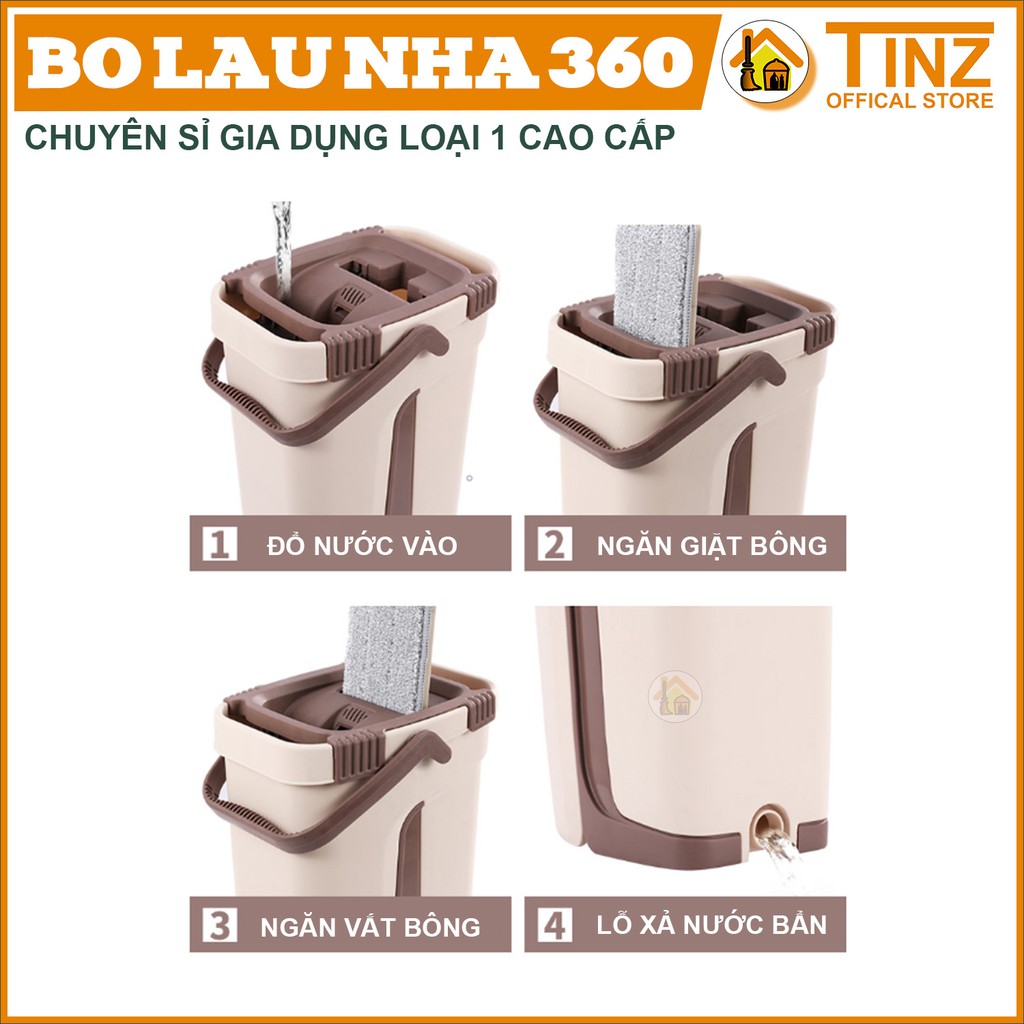 Bộ lau nhà thông minh, cây lau nhà 360 độ tự vắt 2 ngăn TINZ|Mã Vuong