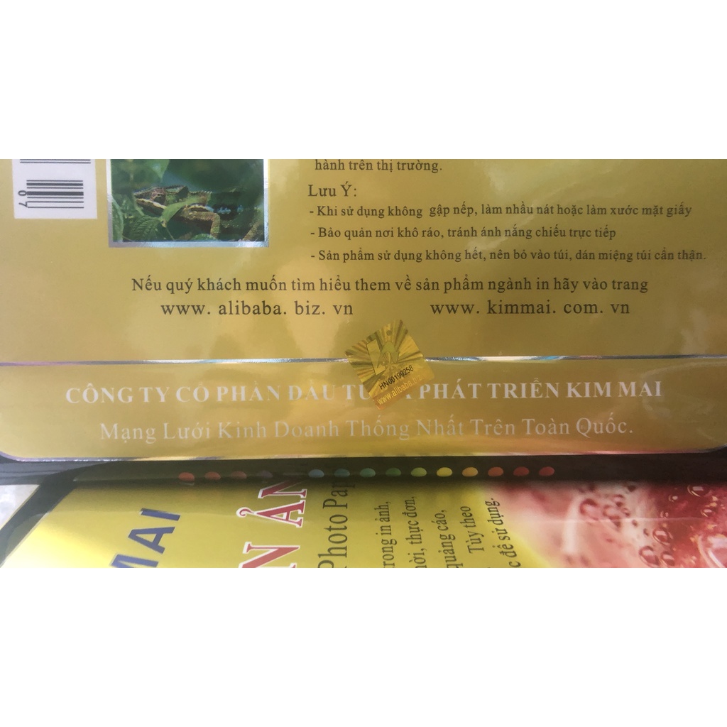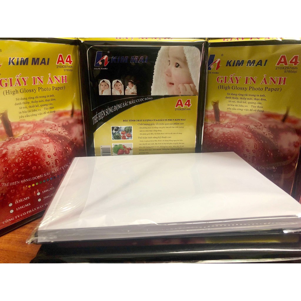 - Giấy in ảnh Kim Mai bóng 1 mặt được sản xuất bằng nguyên liệu giấy cao cấp, đặc biệt là lớp bột phủ và giấy bìa tạo nên chất lượng ảnh in cao, màu sắc rõ nét không nhòe mực, khô nhanh, chống nước tốt.- Chuyên dùng in ảnh, in tài liệu, thiết kế tờ rơi, quảng cáo, thực đơn, thiếp cưới...phù hợp với hầu hết các loại máy in phun.