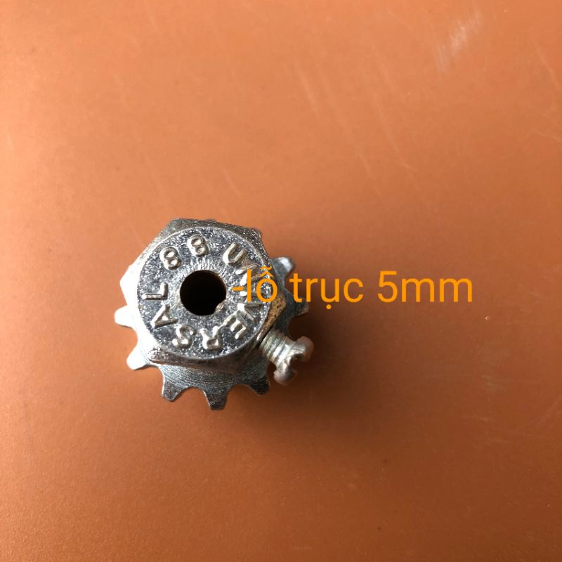 Sản phẩm có nhiệm vụ kết nối nhông tải vào trục của mô tơ giảm tốc để kéo xích cam làm quay xiên thịt trên máy nướng tự động.Có nhiều cỡ trục để các bác chọn, các bác kiểm tra trục mô tơ của mình cỡ bao nhiêu thì đặt cỡ đó ạ