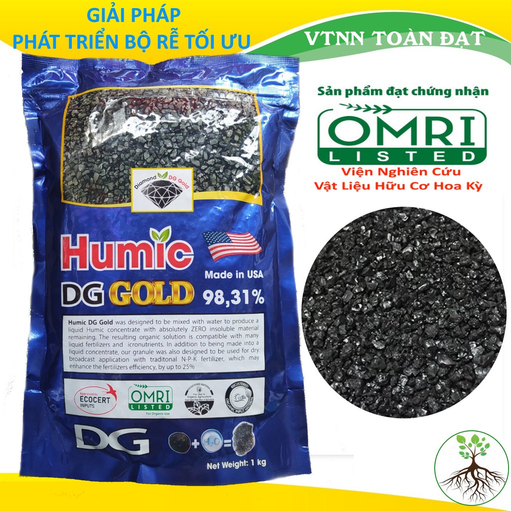 Phân Bón HUMIC GOLD - Humic nhập khẩu Mỹ (khối lượng 1kg)Humic DG Gold là dòng sản phẩm mới nhất với độ hòa tan 100% ở dạng hạt.