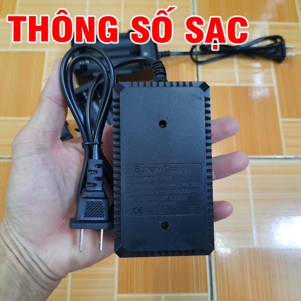 Đế sạc pin 18650 hai khe có dây cắm dùng nguồn 220vThông số sạc :