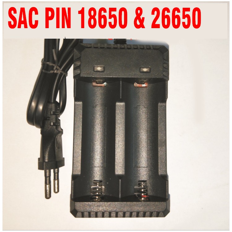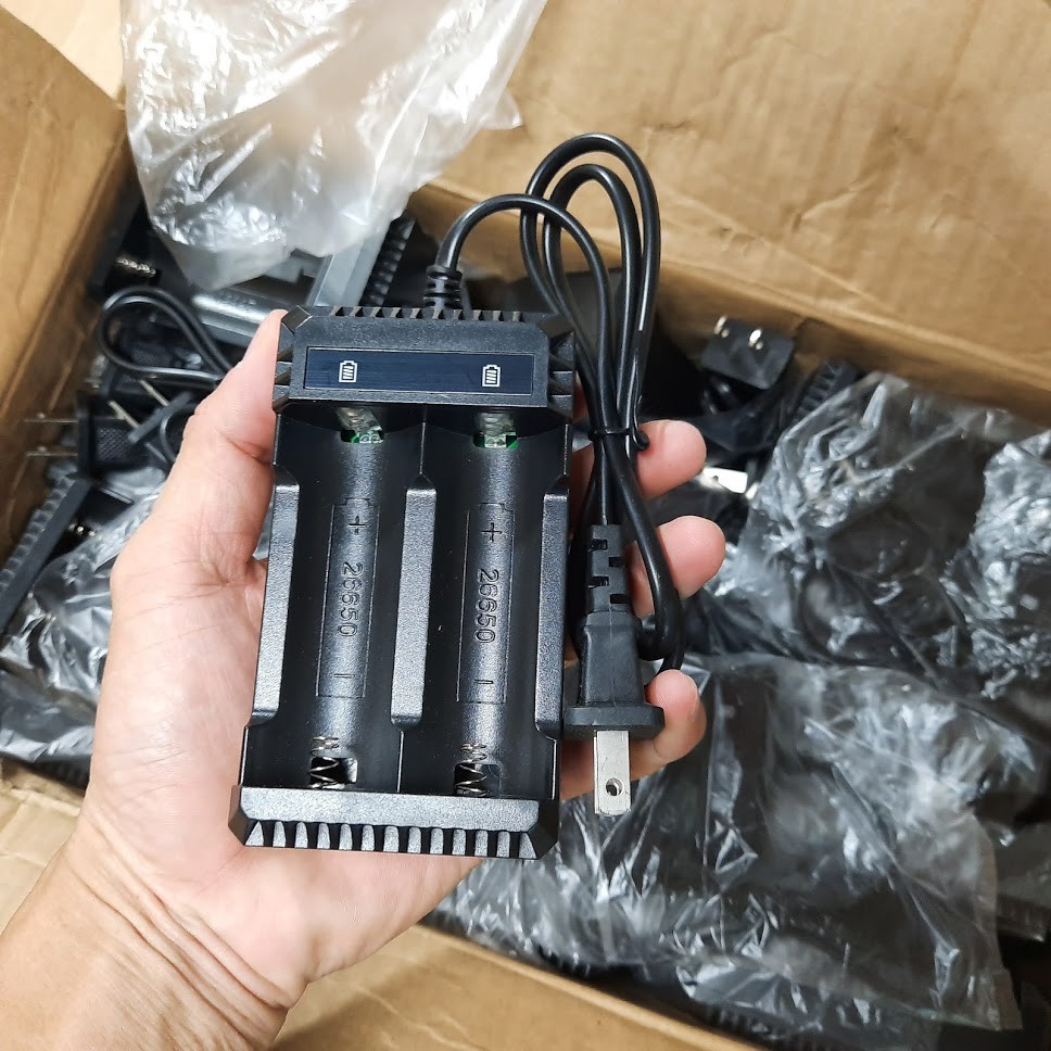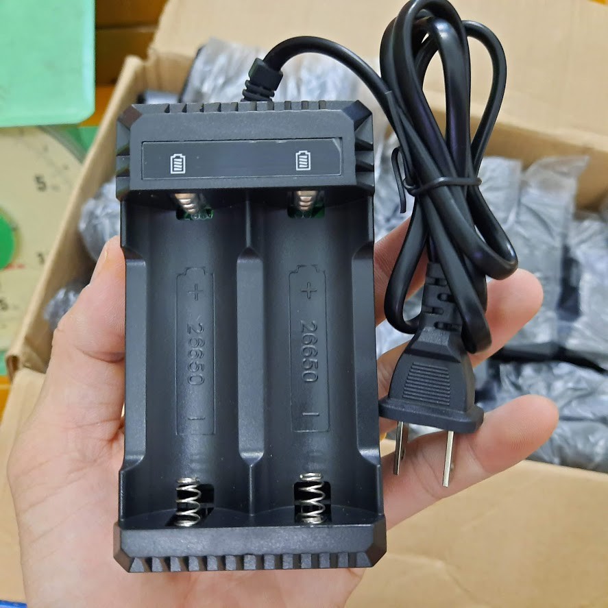 Bộ sạc 2 pin 3.7v 18650 26650 có dây cắm sử dụng nguồn điện 220v