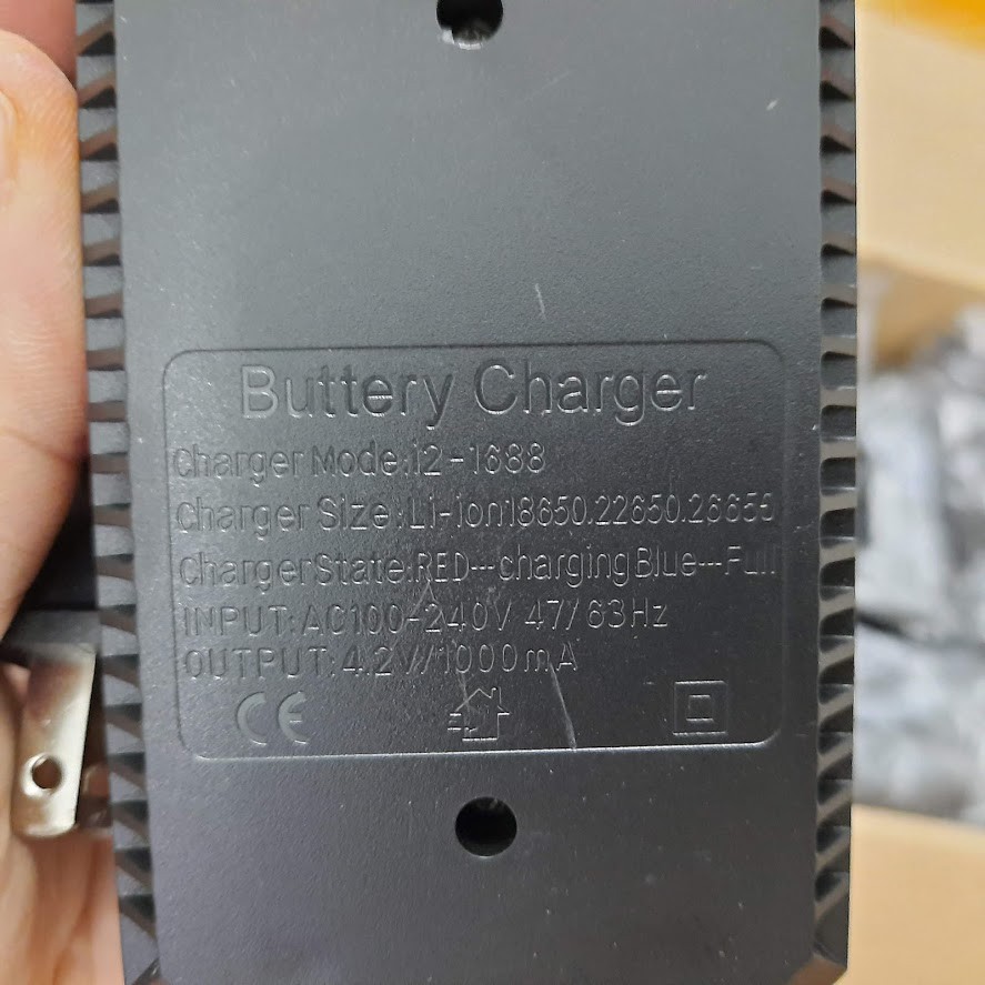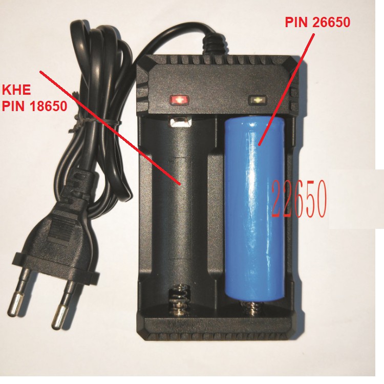 - Sạc sử dụng cho pin loại 18650 (chiều dài 65mm, đường kính pin 18mm)