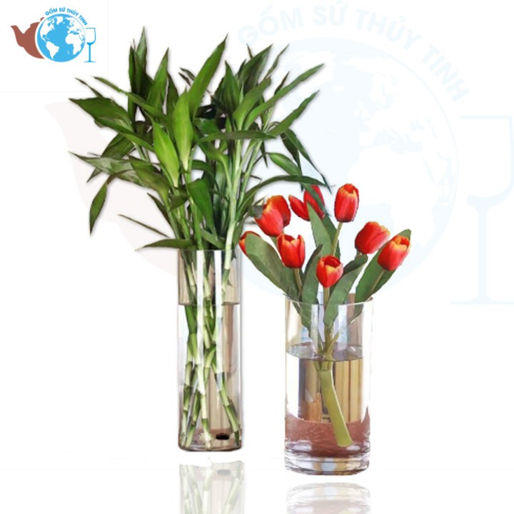 Bình hoa thủy tinh hình trụ là vật dụng không thể thiếu cho mọi người.\