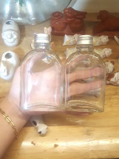 Nhà cửa & Đời sống > Bộ đồ bàn ăn > Bình nước & phụ kiện || Chai thủy tinh 100ml vuông dẹp vai tròn nắp nhômCòn hàng