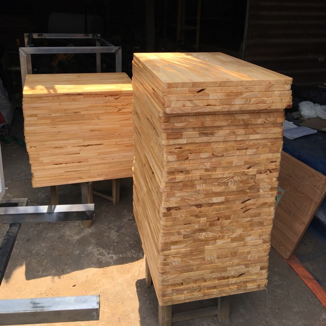 Chất liệu: gỗ cao su ghép thanh tự nhiên, phủ keo 2 mặt, chống nước