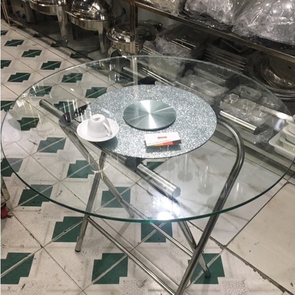 - Kích thước mặt kính xoay: Ø60, 70, 80, 90, 100, 120cm tuỳ thuộc vào bàn ăn tròn tương đương 1,2m, 1,3m, 1,4m, 1,5m, 1,6m, 1,8m,...