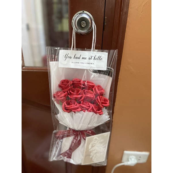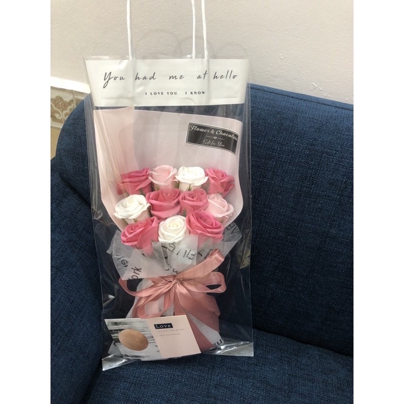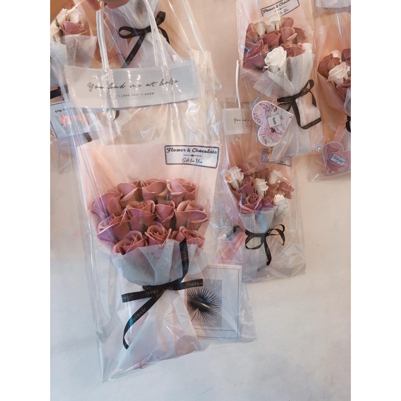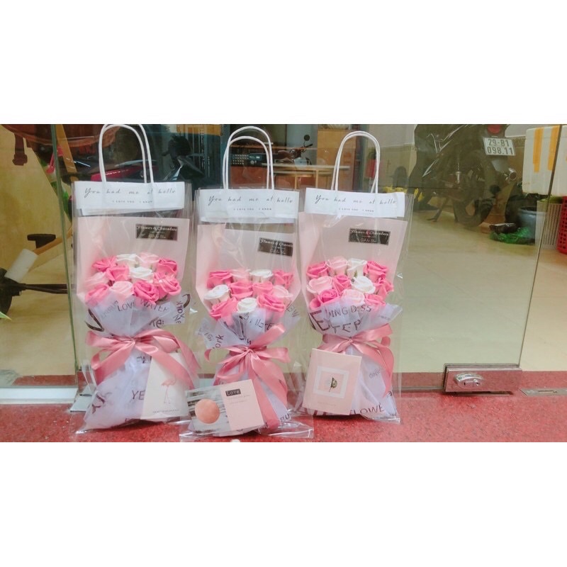 Bó hoa sáp 11 bông ĐG tặng kèm túi quai giấy, thiệp