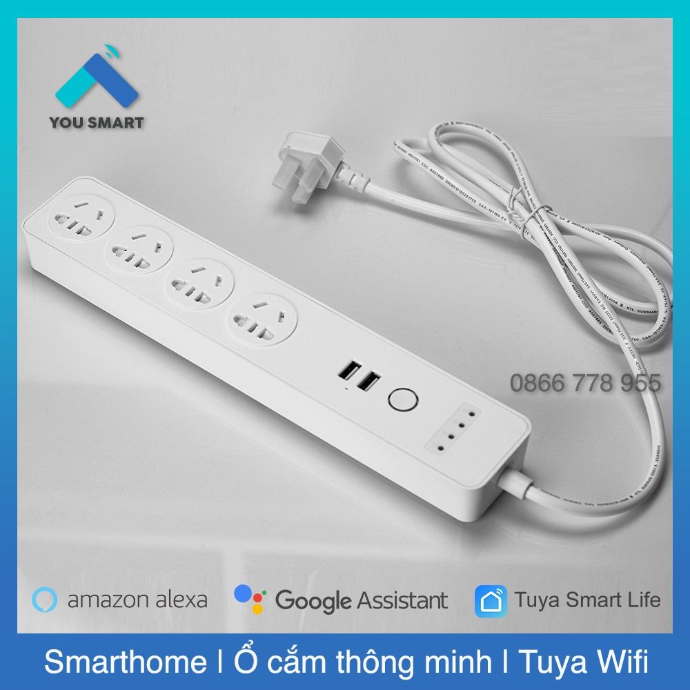 Ổ Cắm Thông Minh 4 Cổng Kéo Dài 2 Cổng USB - Tuya Smartlife