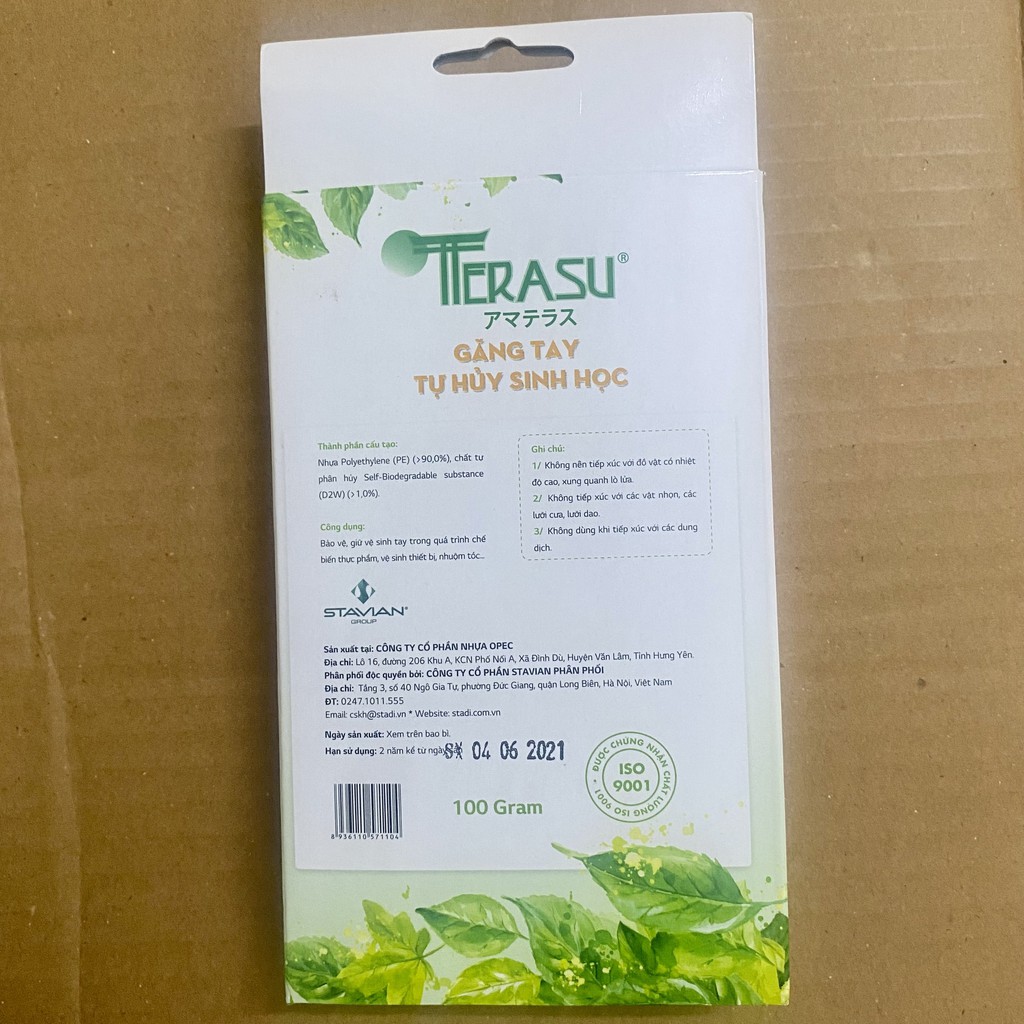 Găng tay tự hủy sinh học được làm bằng nhựa HDPE nguyên sinh kết hợp với chất phụ gia tự hủy sinh học và sản xuất bằng công nghệ tiên tiến nhất, cho ra sản phẩm có độ bền, dai, khó rách. Đặc biệt là sản phẩm tự hủy sinh học rất thân thiện với môi trường. ✔️