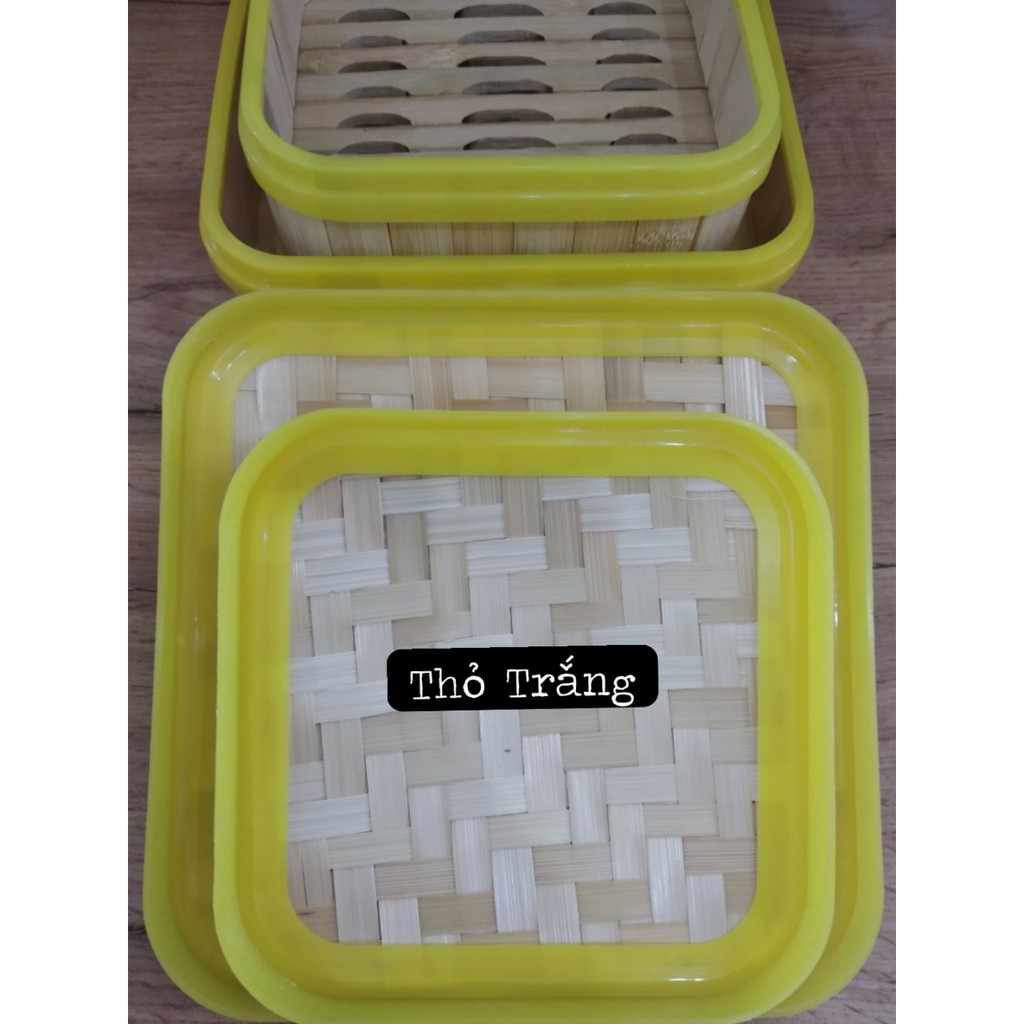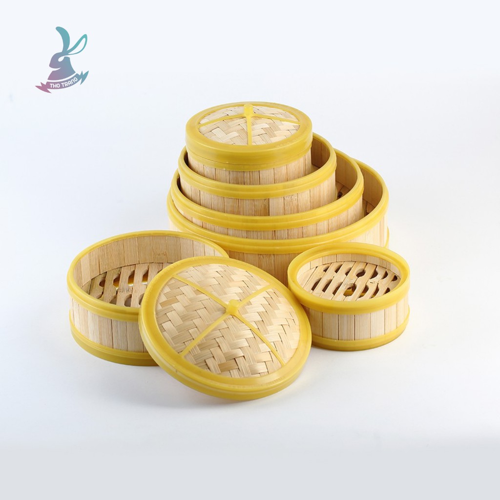 Xửng hấp gỗ gọng nhựa tròn vuông dùng để hấp dimsum, bánh bao kèm nắp đủ size