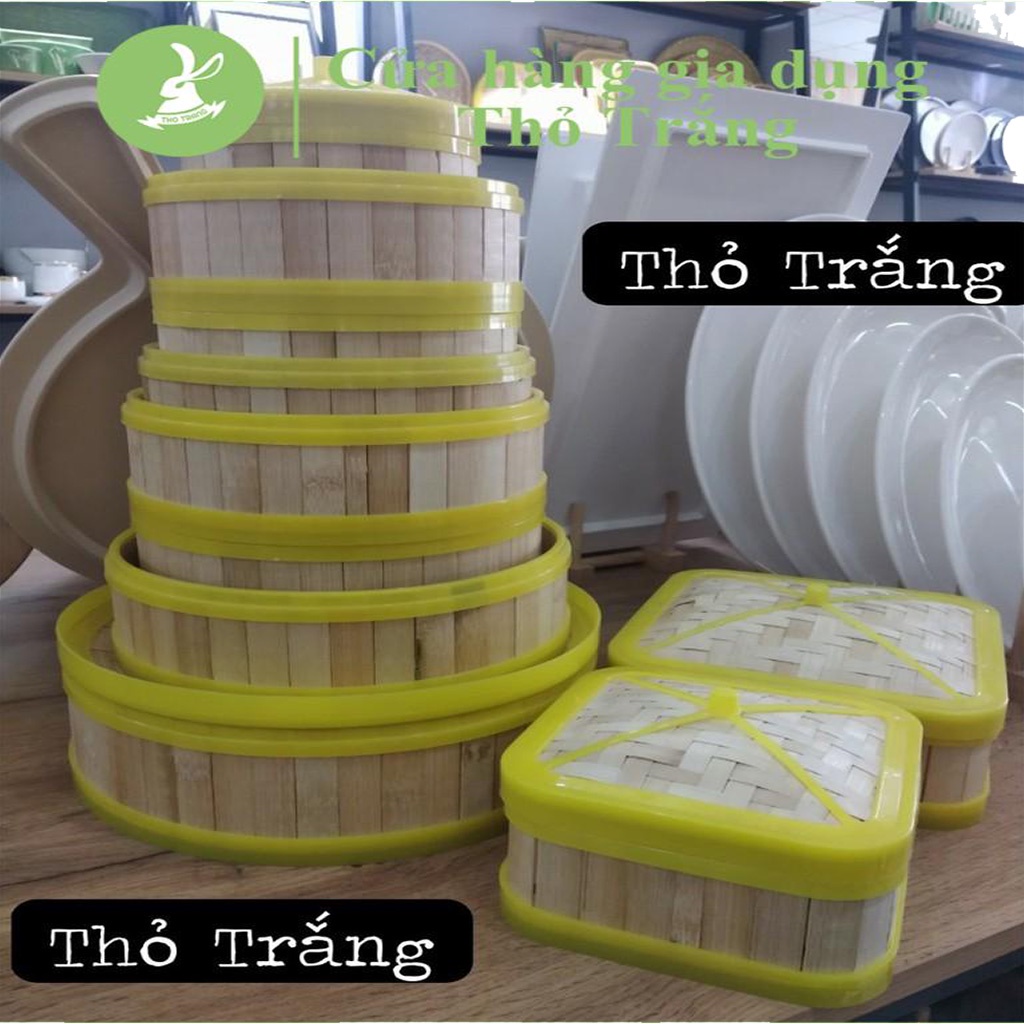 Nhà cửa & Đời sống > Dụng cụ nhà bếp > Khác || Xửng hấp gỗ gọng nhựa tròn vuông dùng để hấp dimsum, bánh bao kèm nắp đủ sizeCòn hàng