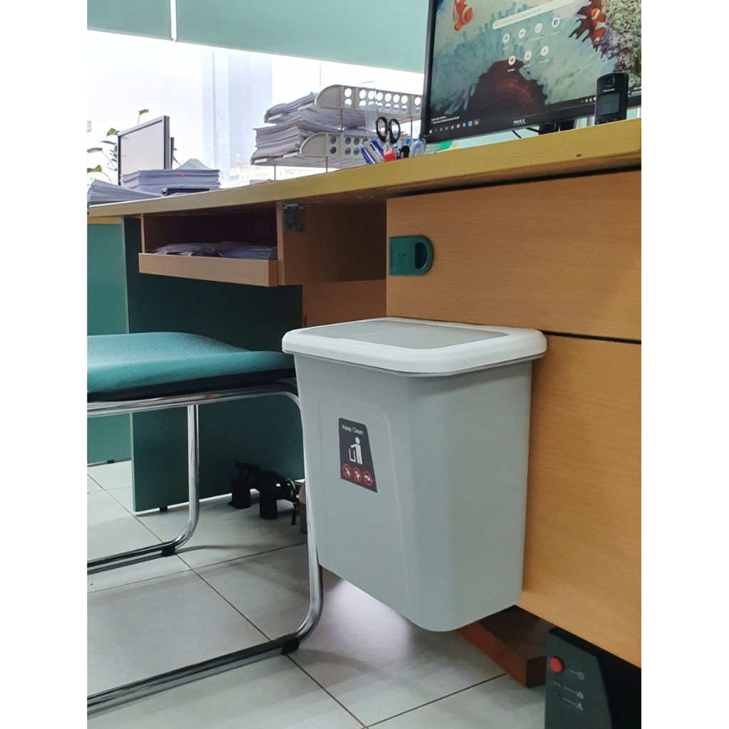 Thùng rác rất tiện lợi có thể treo tủ bếp, thùng rác gài cánh tủ bàn làm việc văn phòng, để sàn, treo tường để nhà vệ sinh