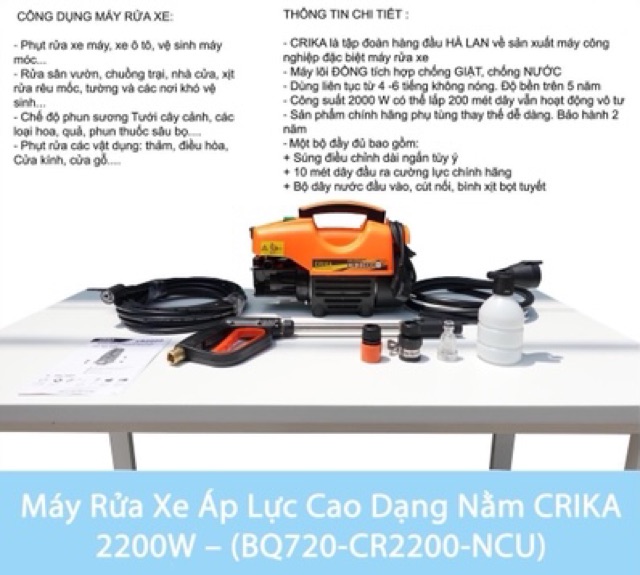 Giới thiệu Máy rửa xe đa năng áp lực cao Crika 2200w ( Miễn phí giao hàng - Bảo hành 2 năm)