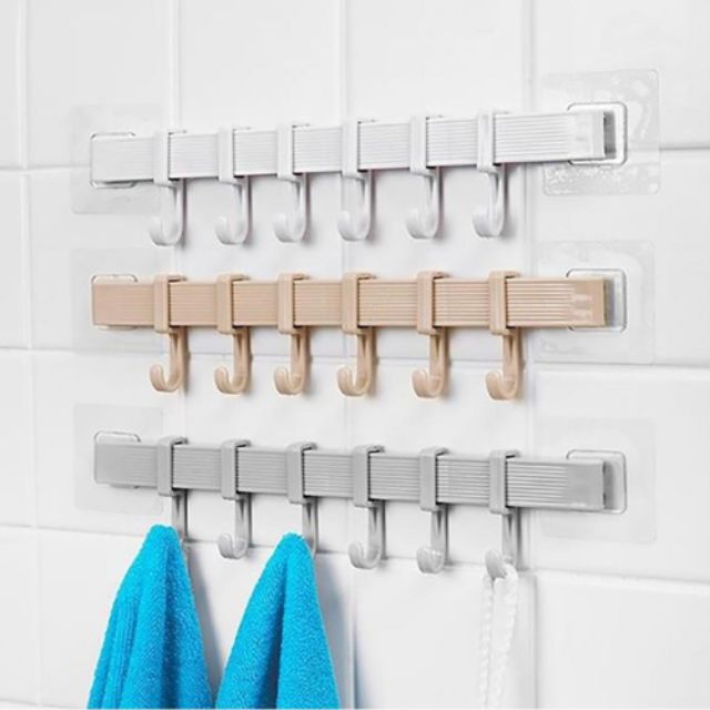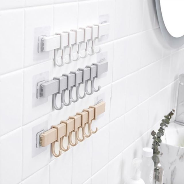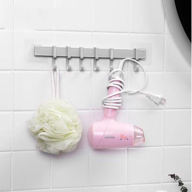 Móc dán tường 6 móc 34.5x6cm dán tường nhà tắm nhà bếp với 6 móc di động siêu chắc không khoan đụcMóc dán tường 6 móc 34.5x6cm với kiểu dáng nhỏ gọn, mỏng nhẹ tiện lợi, là trợ thủ đắc lực giúp tiết kiệm không gian cực kì hiệu quả, đảm bảo tính thẩm mỹ và gọn gàng đáng kể. Thiết kế thông minh không cần khoan lỗ hay đóng đinh, không để lại vết tích trên tường, dễ dàng dán tùy ý trong không gian bất kì.