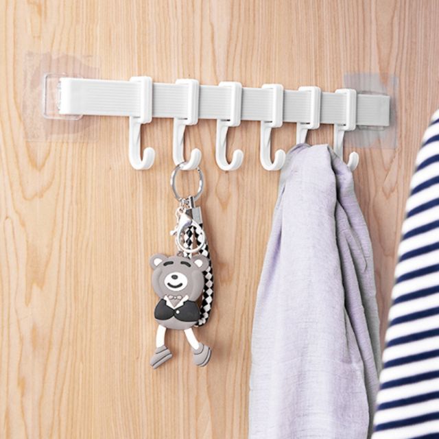 Thanh Treo Đồ Móc Treo Đồ Dán Tường Đa Năng 6 Móc