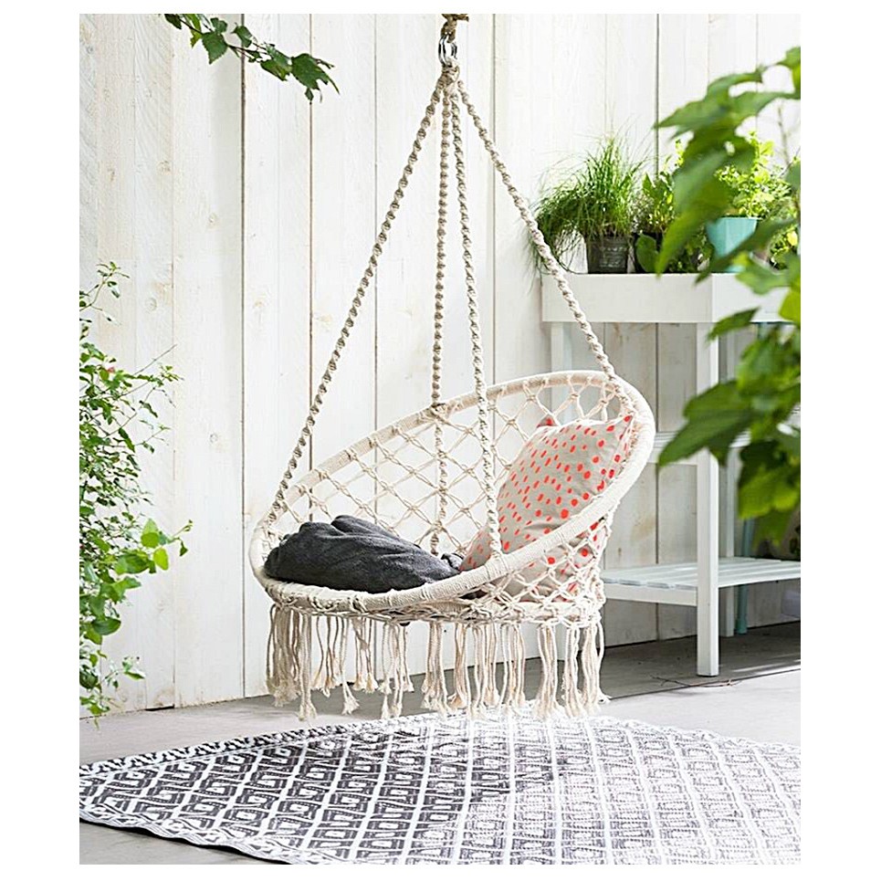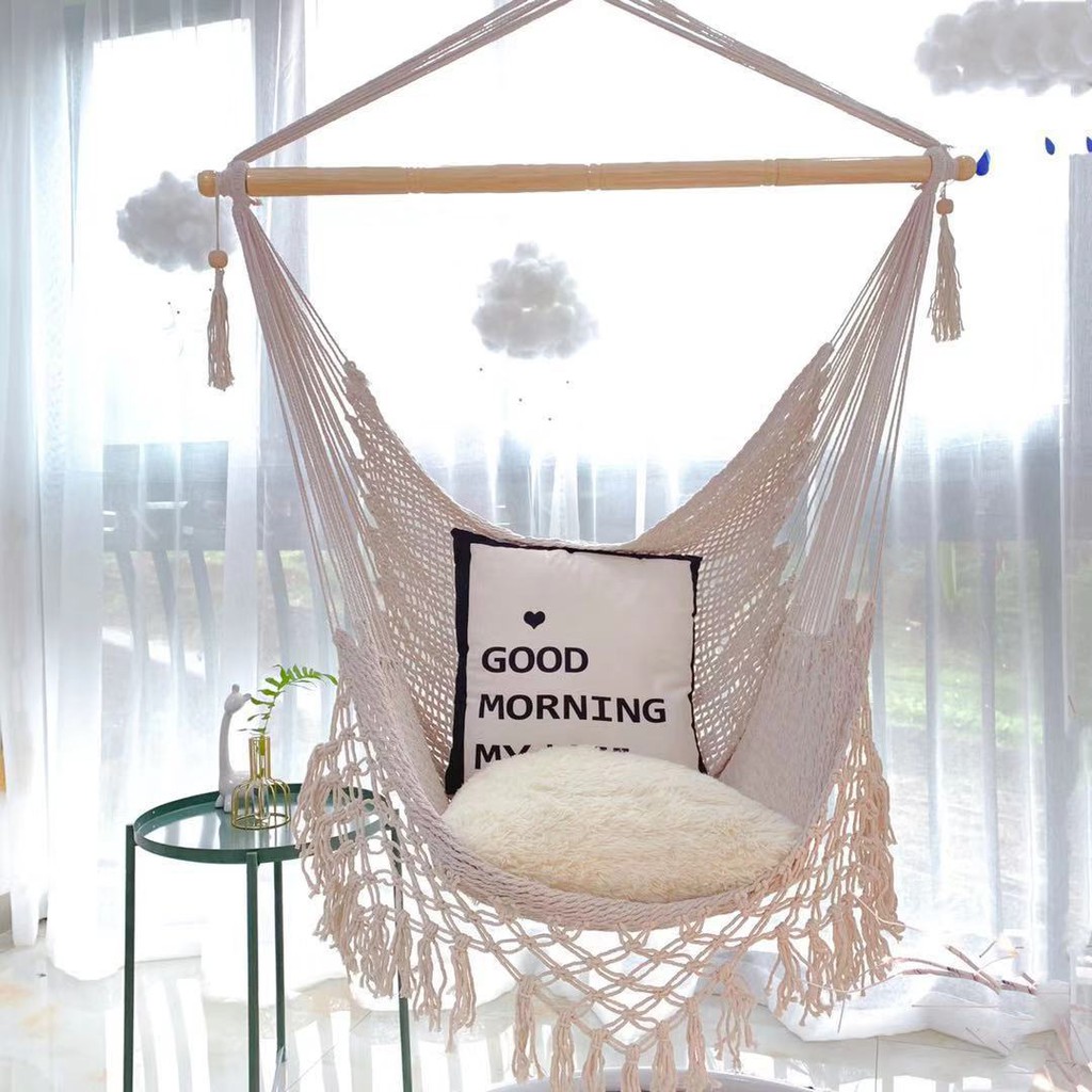 Phong cách võng handmade Chic mang lại cảm giác phong cách và độc đáo cho bất kỳ ngôi nhà nào. Dây thừng và xích đu được thiết kế với họa tiết Ghế lưới ren và tua rua. Sản xuất bông thủ công, rửa tay, để ngăn chặn các yếu tố ngoài trời.