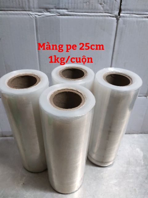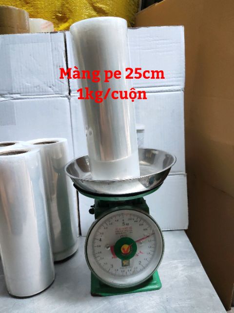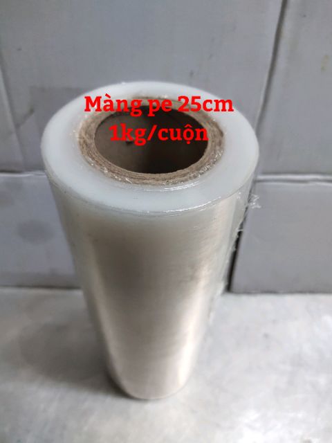 Màng Pe 25cm cân nặng 1kg lõi giấy mỏng 150gram.