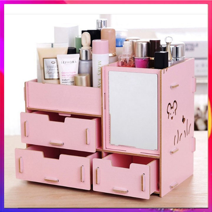 Kệ Đựng Mỹ Phẩm Gỗ 3 Ngăn Có Gương