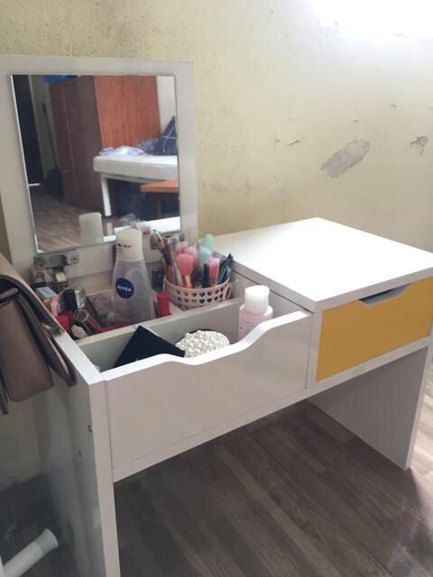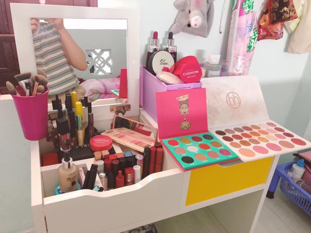 Bàn trang điểm không đơn thuần chỉ là nhu cầu mà còn là sở thích của chị em. Đâu nhất thiết phải sở hữu bộ bàn trang điểm đồ sộ, đôi khi chỉ cần một chiếc bàn trang điểm mini bệt cũng đủ để chị em chăm chút nhan sắc, biến mình trở nên xinh đẹp hơn, tự tin hơn khi bước chân xuống phố. Ngày hôm nay, hãy cùng Shop tìm hiểu về mẫu bàn trang điểm mini vô cùng dễ thương này nhé!