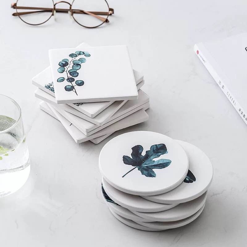 Nhà cửa & Đời sống > Bộ đồ bàn ăn > Khay, tấm lót bàn ăn || [Mã LIFEHLSALE2 giảm 10% đơn 0Đ] Lót ly gốm thấm nước họa tiết LÁ CÂY TropicalCòn hàng