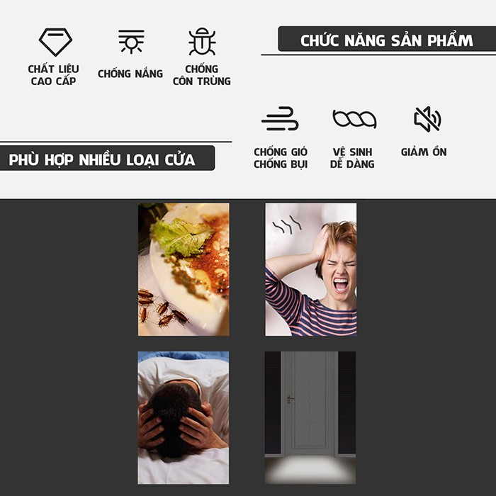 Làm kín khe cửa, chắn gió, bụi, ngăn côn trùng xâm nhập, giữ nhà cửa sạch sẽ