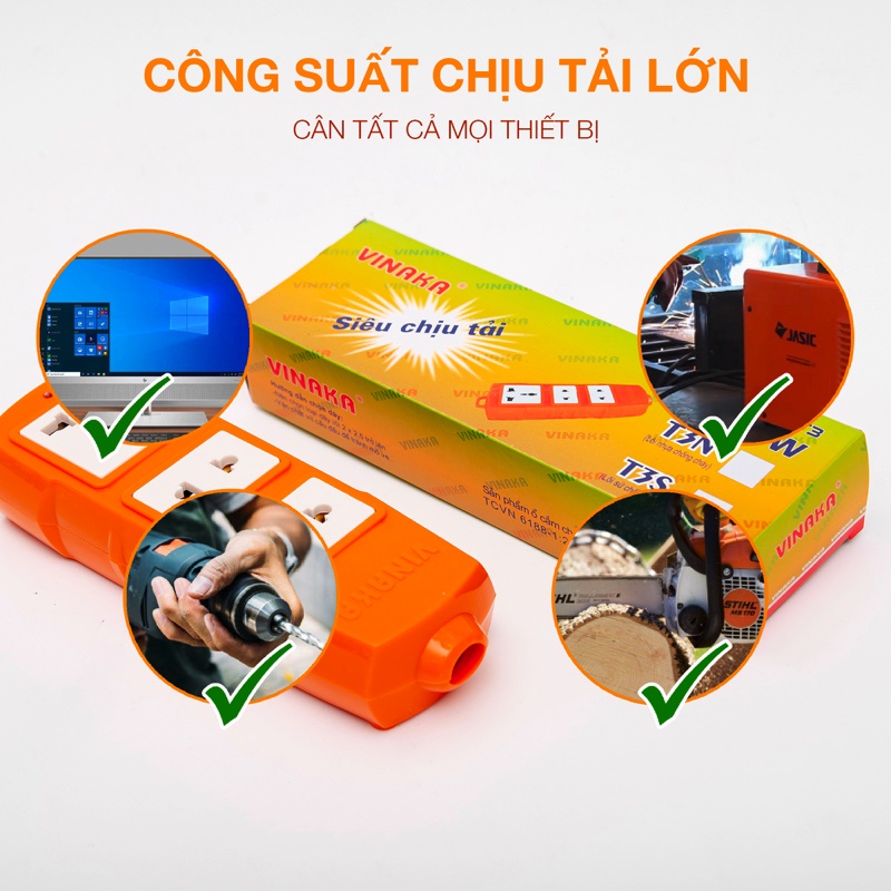 Ổ cắm điện chịu tải VINAKA 6000W không dây lõi sứ chống cháy T3STHÔNG TIN THƯƠNG HIỆU