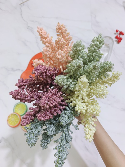 Chùm gồm 6 cành hoa được làm từ xốp ( vì vậy xốp có thể rơi vài hạt trong quá trình vận chuyển), thân là nhựa