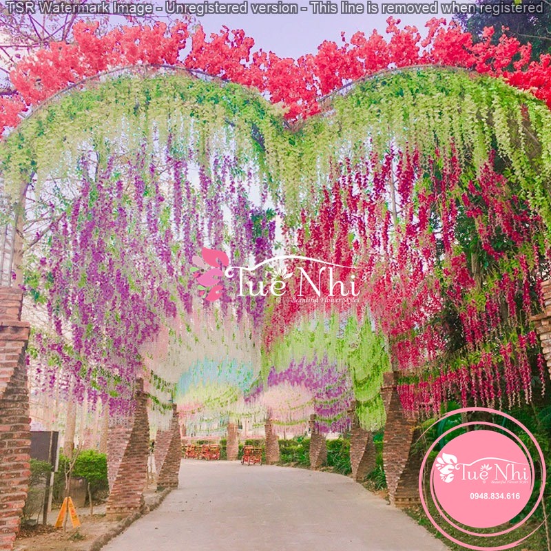 BÓ 12 CÀNH HOA TỬ ĐẰNG GIẢ DÀI 110cm - Hoa Gỉa,Hoa Lụa Trang Trí.