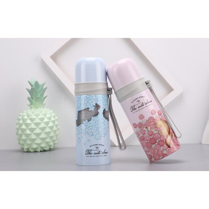 Bình Nước Giữ Nhiệt lõi inox Không Gỉ Họa Tiết hoa lá 500ml siêu hot 2020
