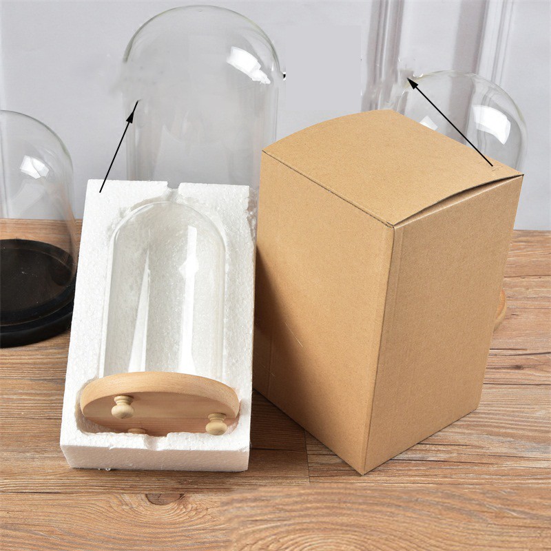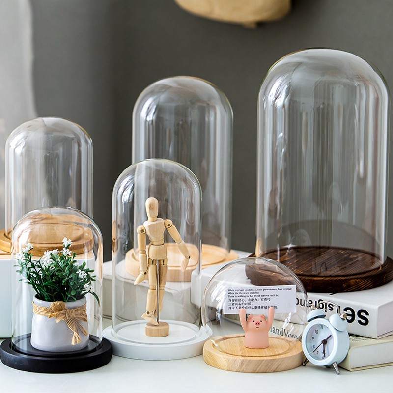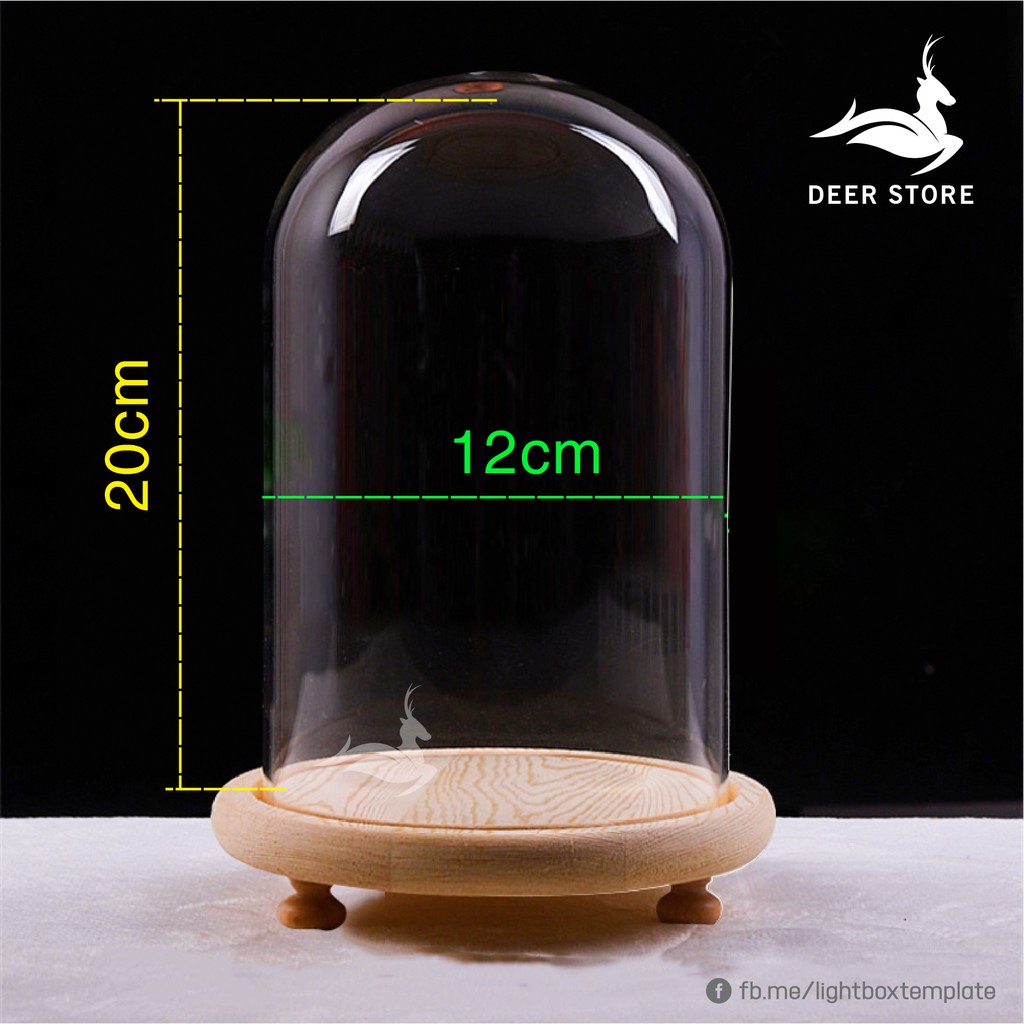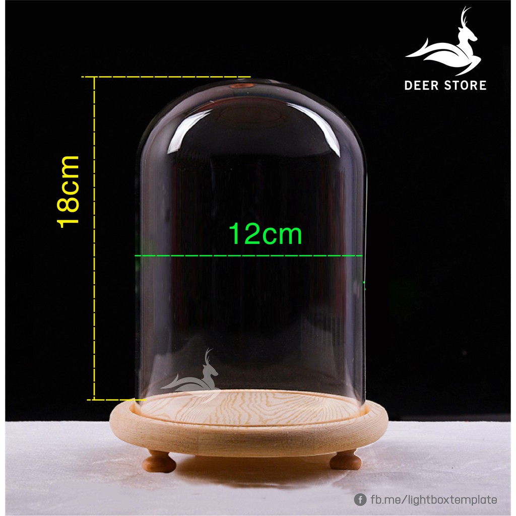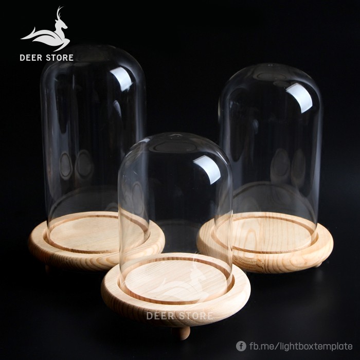 - Chất liệu: chụp thủy tinh dày trong suốt; đế gỗ thông chắc chắn