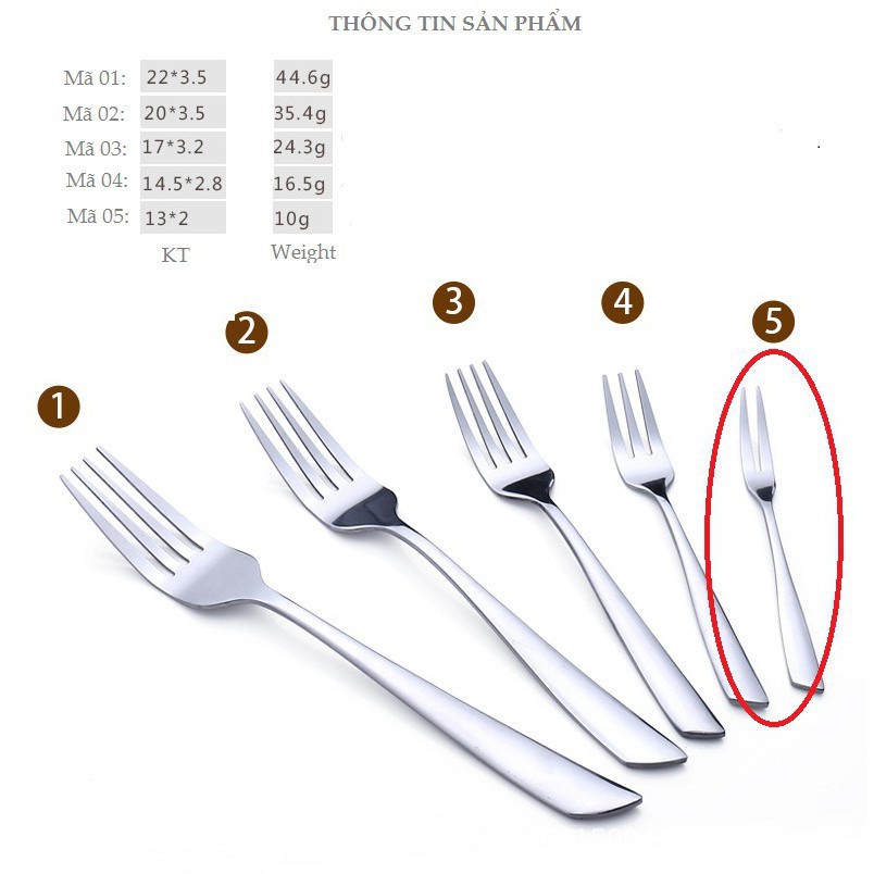 Dĩa 3 chân, dài 12,5cmDĩa của Shop là dĩa loại dầy đẹp, làm bằng chất liệu inox 304 cao cấp không han gỉ, sáng bóng với thời gian và độ bền duy trì sau nhiều năm sử dụng.